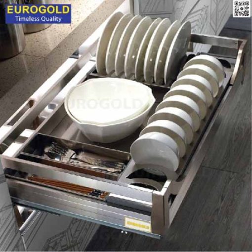 • Giá để bát đĩa Eurogold hộp âm tủ có kích thước chiều rộng tủ từ 600-900mm, mang lại cho bạn lựa chọn phù hợp nhất với tủ bếp của gia đình mình.